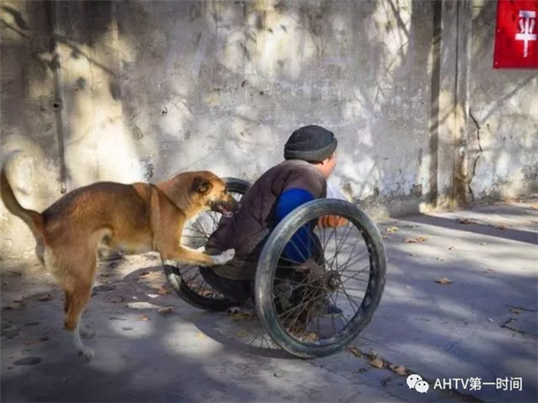 街坊们都说,老马的狗通人性,很多人都知道它。它不但会给老马看摊儿,天冷了还会给老马暖脚。老马用轮子“走路”,上坡很吃力,它就在背后使劲用前爪推老马,助他一臂之力。大黄狗奋力推老马的场景,街坊们几乎每天都能看到。
