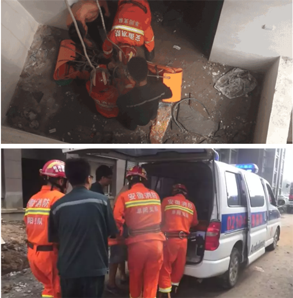 7月11日上午9点半左右,阜阳市阜南县一在建工地上,一位工人在安装水管时,一时不慎跌落到地下室,腰部受伤,动弹不得。